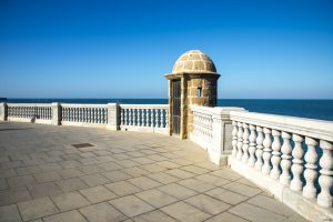 Ein reicher Mensch mit Fliege ging am Meer entlang.
